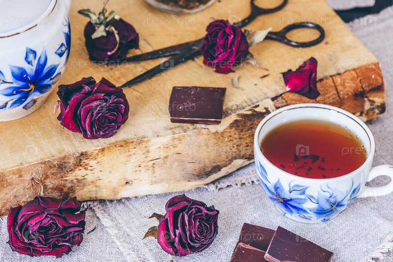 Чашка чая с бутонами роз