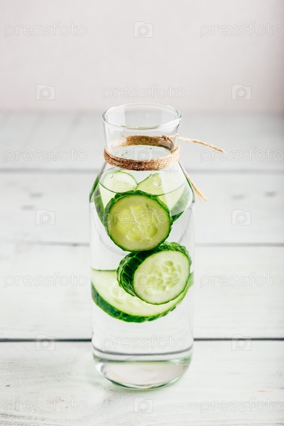 Настой с нарезанным огурцом в бутылке