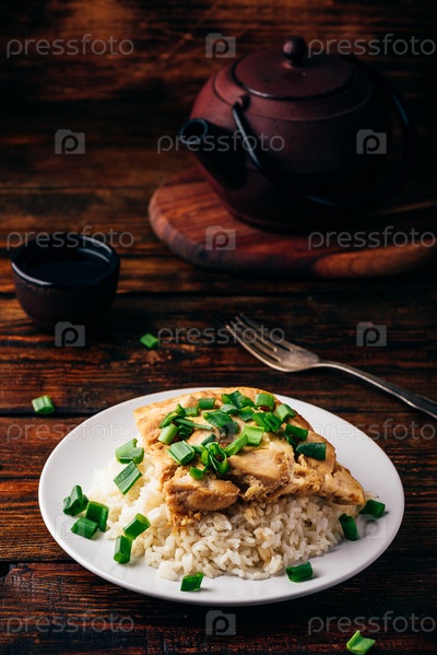 Блюдо из оякодона на белой тарелке