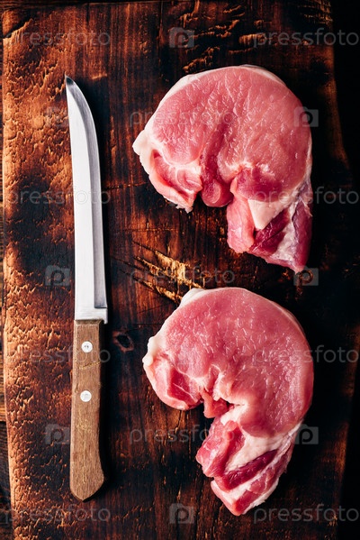 Два стейка из свиной вырезки с ножом
