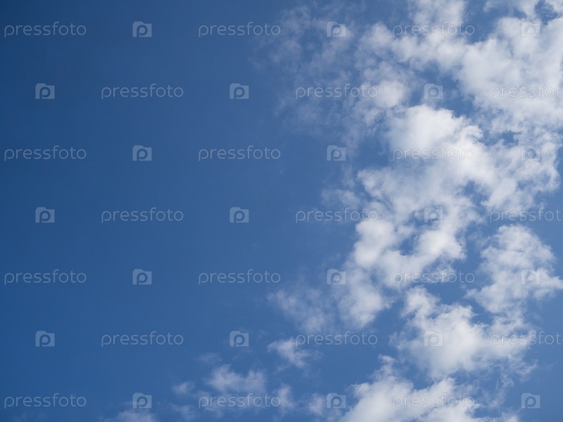 Летнее голубое небо и белые облака. Фон голубого неба с белыми облаками. Красивый облачный покров в солнечный безветренный сезон. Панорамный ярко-синий облачный пейзаж в естественной среде
