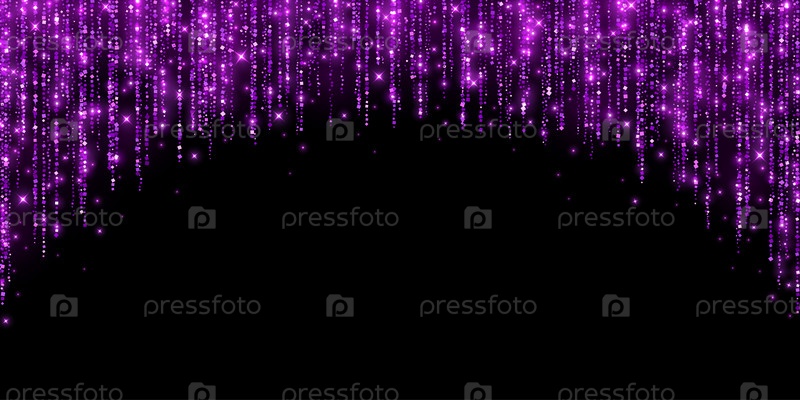 Фиолетовый блеск украшения гирлянды дуги на черном фоне