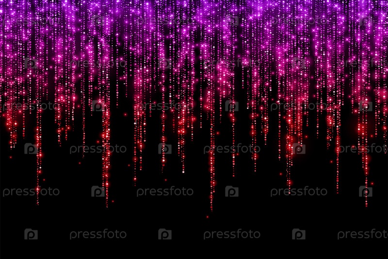 Фиолетовый красный праздничный блестящий блеск длинная дождевая гирлянда на черном фоне