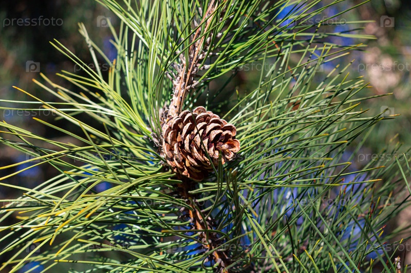 Сосновые ветки с шишками. фон сосновых ветвей