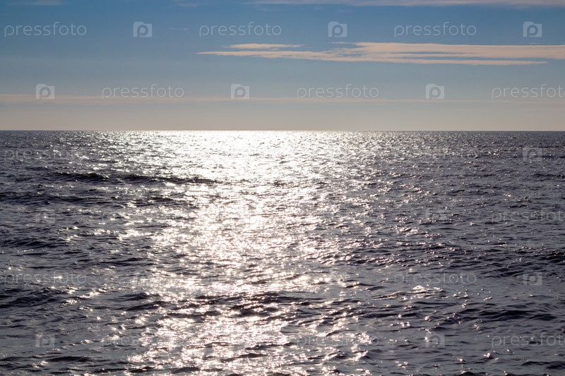 Красивый морской пейзаж. Вид на открытое море. Солнечные блики на поверхности воды. Отлично подходит для фона и дизайна