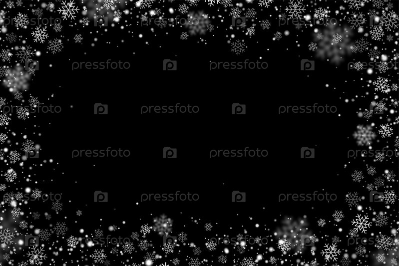 Зимний снег снежинки границы рамки на черном фоне