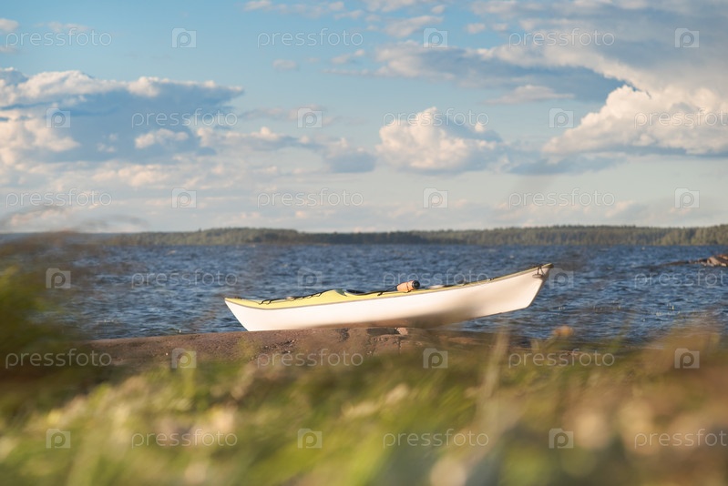 Каяк на гранитном берегу. Нет людей