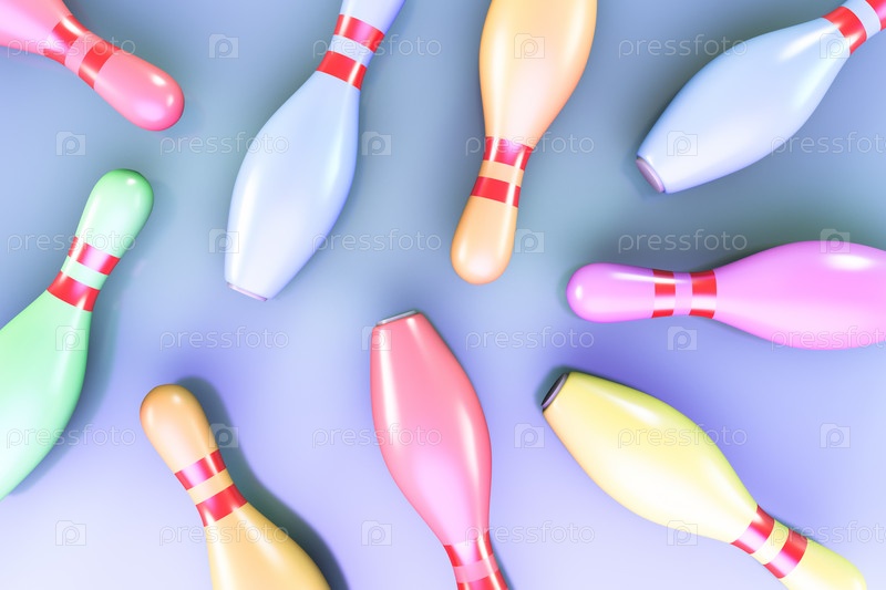 На полу разбросаны цветные кегли. Вид сверху