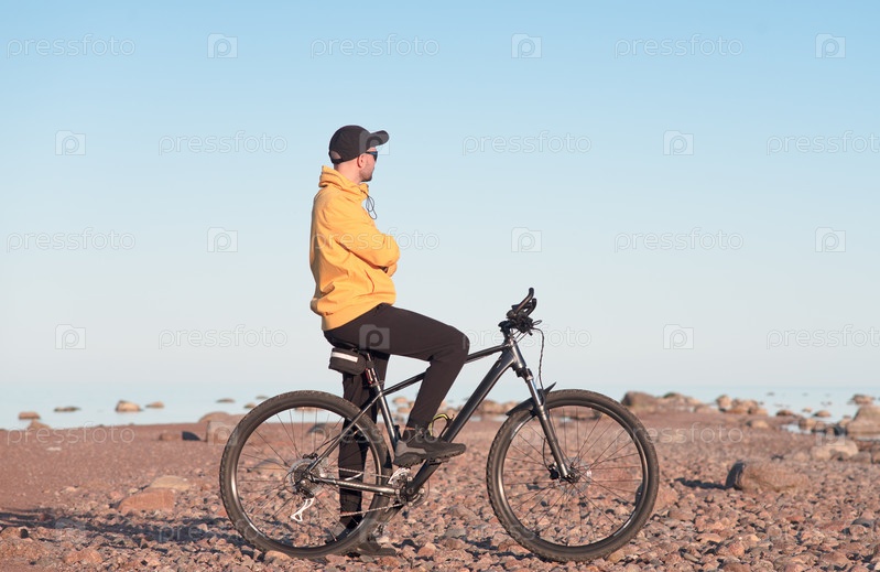 Велосипедист вдали от цивилизации. Он наслаждается видом