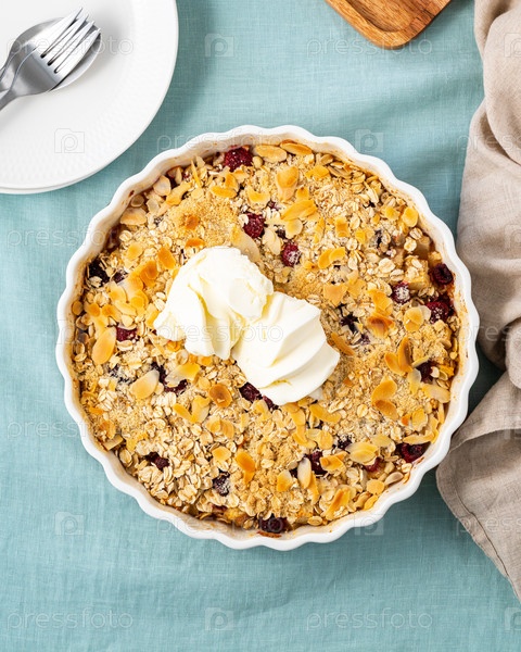 Яблочно-грушевый крамбл с мороженым, штрейзель. Сладкий десерт с овсянкой