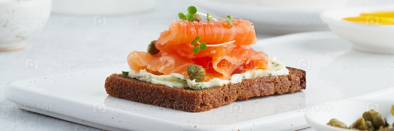 Smorrebrod - традиционные датские бутерброды.Баннер большой ширины для веб-знака