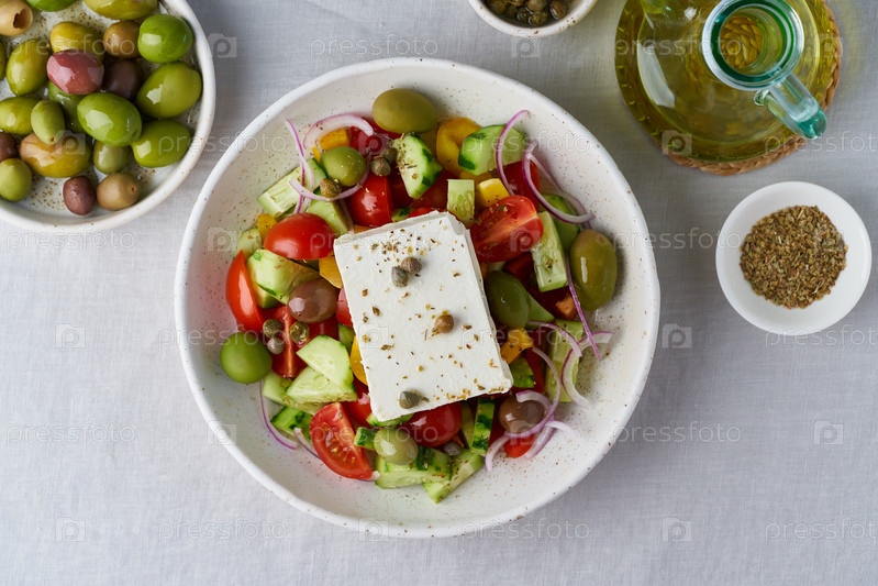 Греческий деревенский салат хориатики с фетой, вид сверху