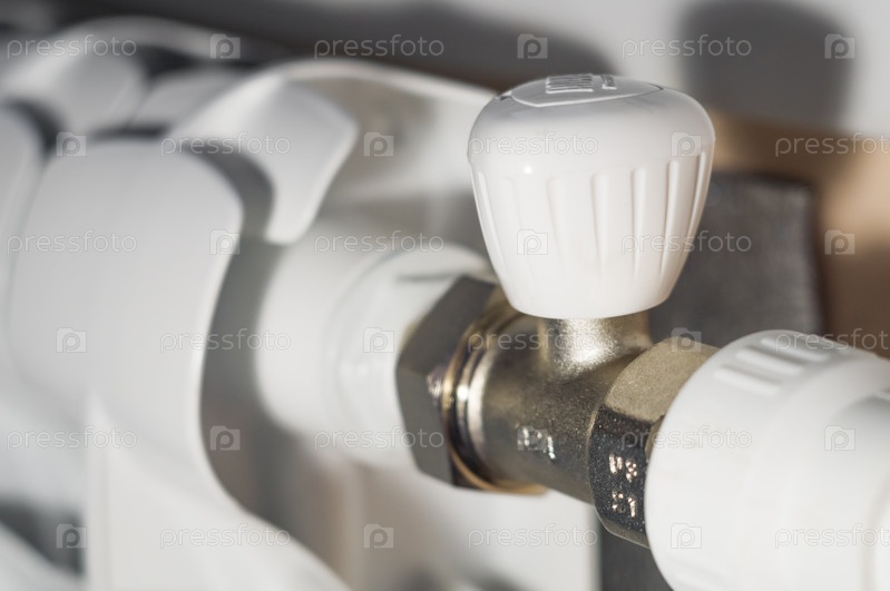 Кран регулирует тепло на батареях отопления в доме. Клапан для отключения. Регулировка подачи теплоносителя внутрь современного радиатора отопления. Выборочный фокус