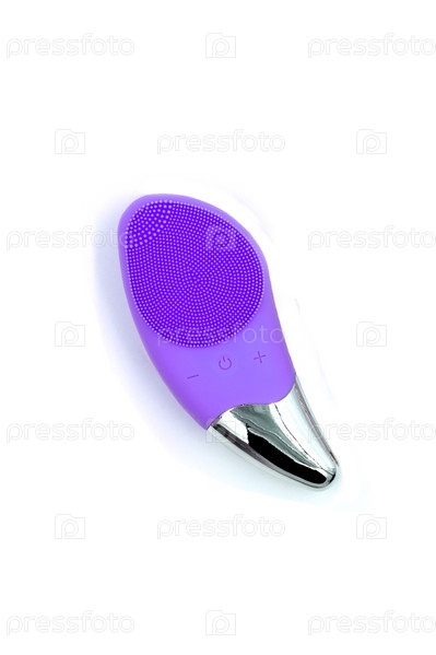 Современная щетка для чистки лица на белом столе. Изолировать косметический аксессуар