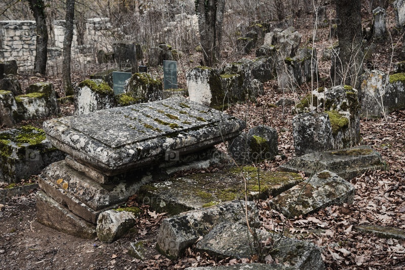 Надгробия на караимском древнем кладбище Балта-Тиймез. Бахчисарай, Крым