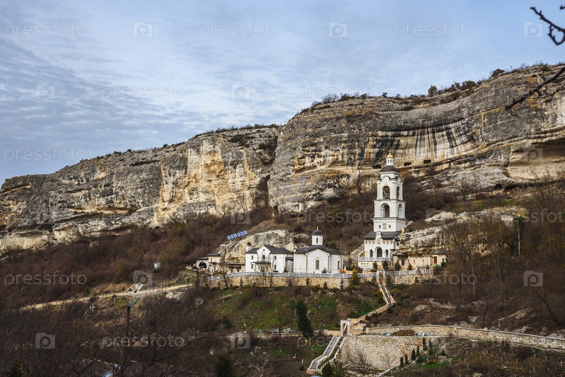 Вид на Успенский пещерный монастырь в Бахчисарае весной. Крым