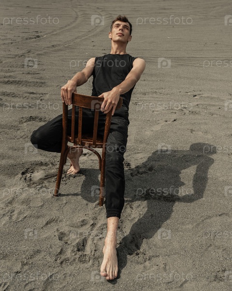 Одинокий человек сидит на стуле в пустыне