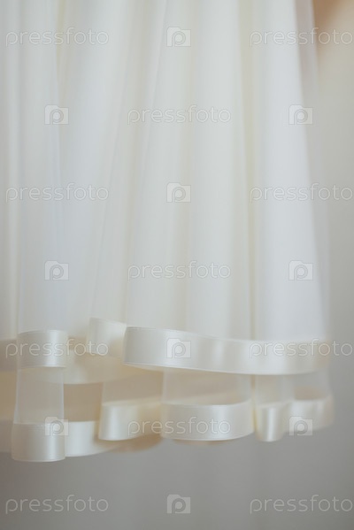 Элемент одежды, низ юбки белого платья с атласной лентой