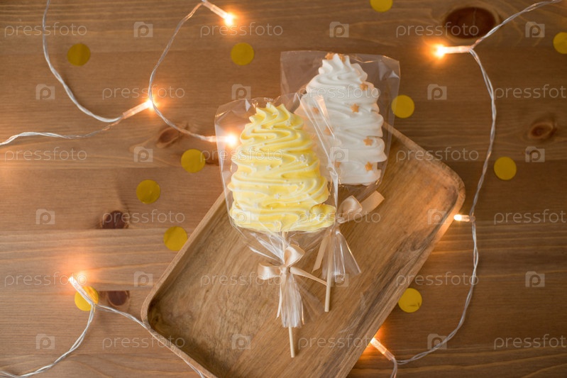 Меринги или безе на палочке в форме рождественской ели