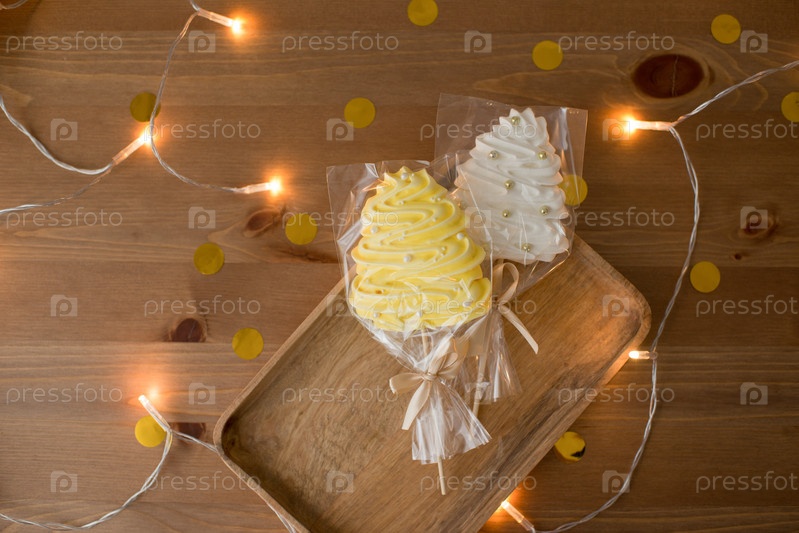 Меринги или безе на палочке в форме рождественской ели