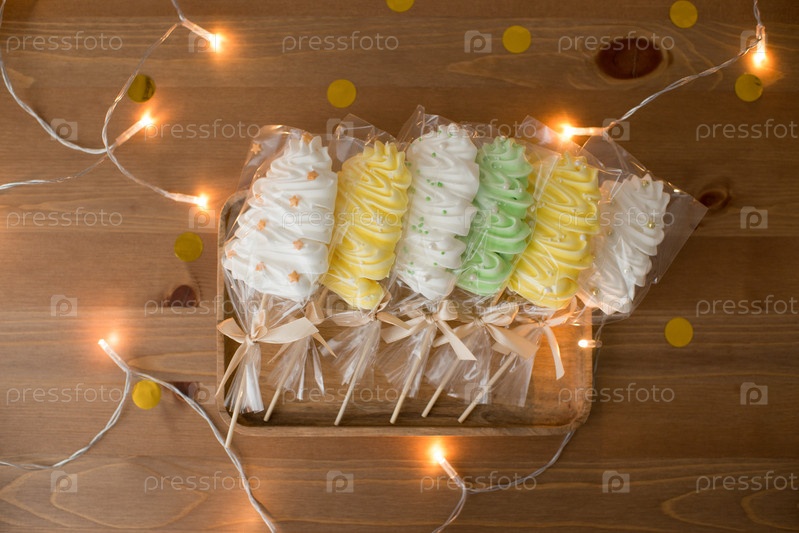 Меринги или безе на палочке в форме рождественской ели