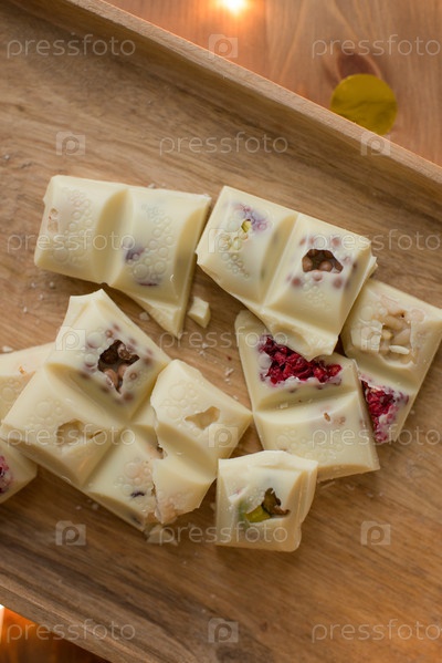 Белый шоколад сделанный вручную на деревянном столе