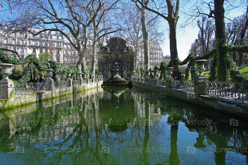 Фонтан Медичи в Люксембургском саду. Париж, Франция. Солнечный день в марте