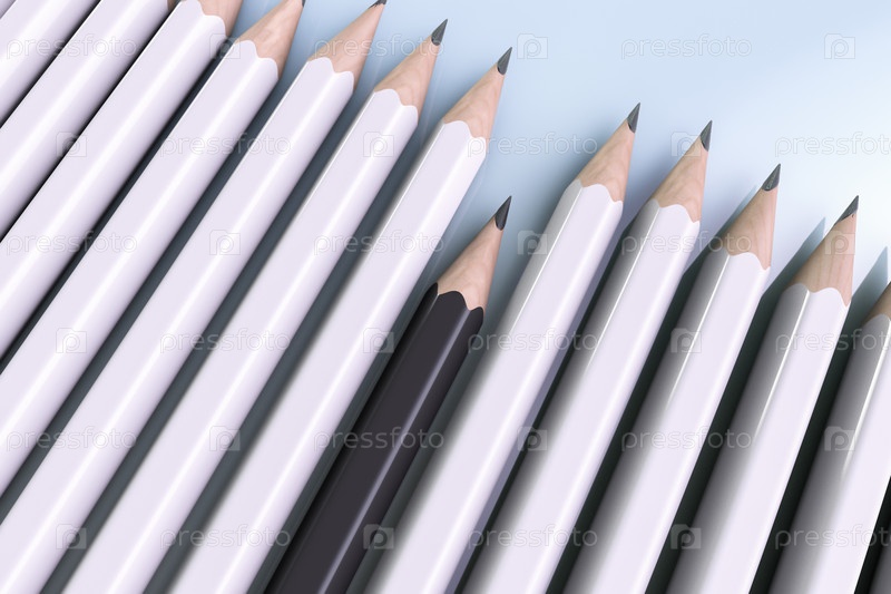 Концепция на тему расовой сегрегации. Разные снаружи и одинаковые внутри. Карандаши белые и черные
