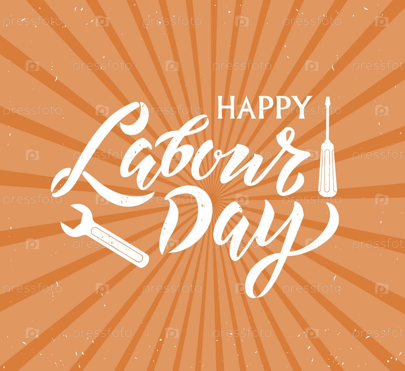 Рукописные надписи с Днем труда. Векторный дизайн счастливого Дня труда для поздравительных открыток и плакатов. Празднование шаблона дизайна. Векторная иллюстрация