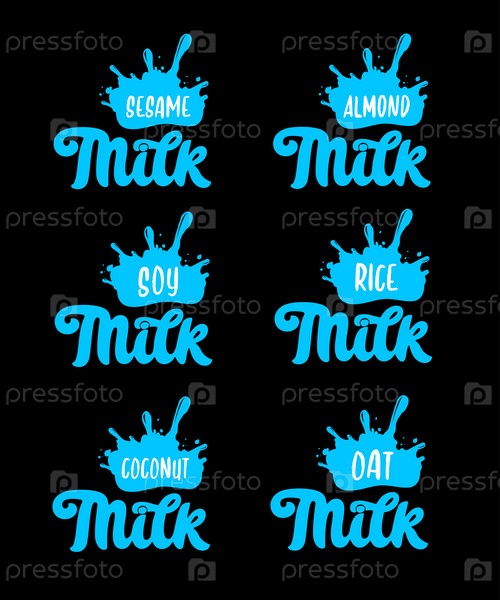 Набор логотипов органического молока. Рукописные надписи. Векторный дизайн типографии для упаковки молока. Шаблон дизайна. Векторная иллюстрация