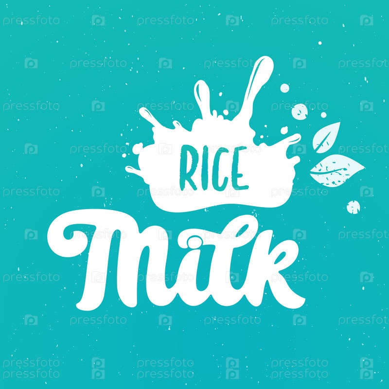 Рисовое молоко рукописные надписи. Дизайн векторной типографии рисового молока для упаковки молока. Шаблон дизайна. Векторная иллюстрация
