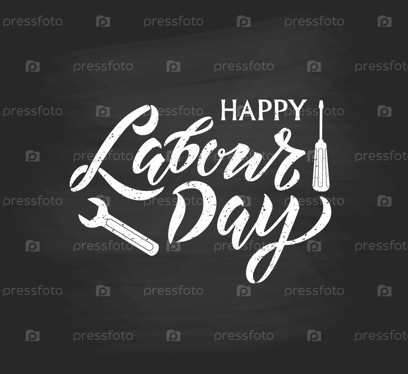 Рукописные надписи с Днем труда. Векторный дизайн счастливого Дня труда для поздравительных открыток и плакатов. Празднование шаблона дизайна. Векторная иллюстрация