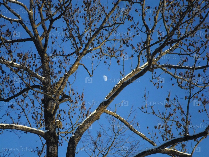 Дерево и луна зимним вечером