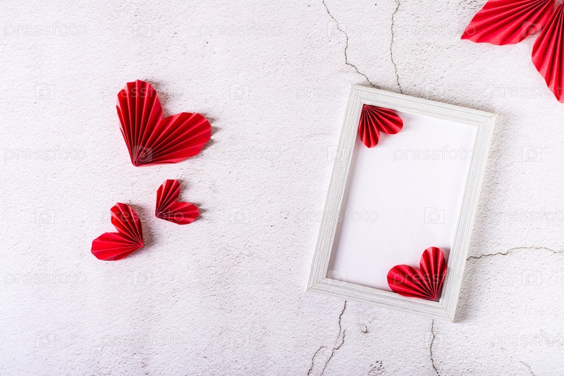 Пустая фоторамка и сердечки и листья из бумаги своими руками на гипсе. Домашнего декора