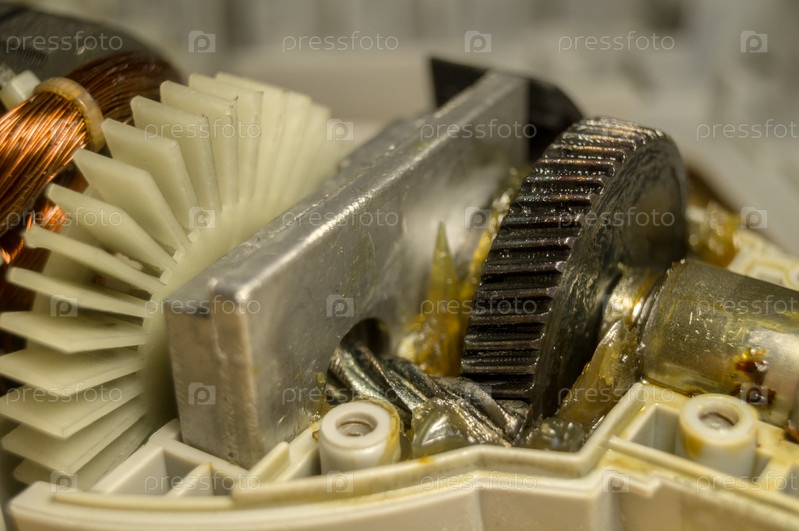 Ремонт электродрели. Разобранные рабочие электроинструменты. Сверло выходит из строя, требует ремонта и замены необслуживаемых деталей. Выборочный фокус