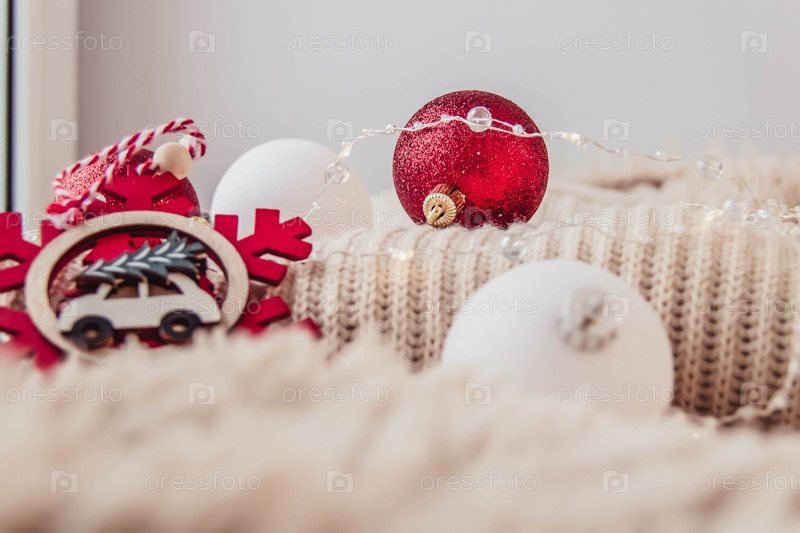Новогодние украшения в красных тонах