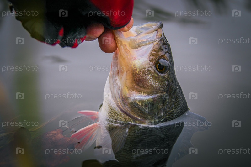 Окунь крупным планом в руке