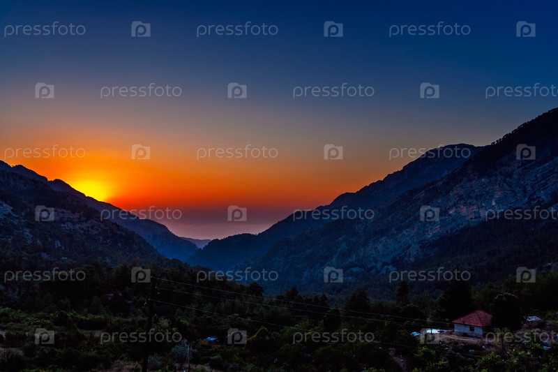 Яркий закат в горах летним вечером