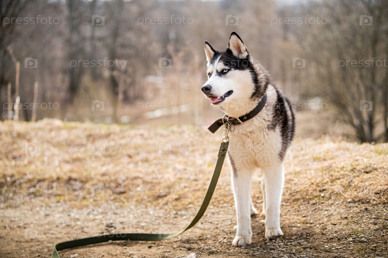 Портрет великолепного сибирского хаски, стоящего на фоне природного северного пейзажа