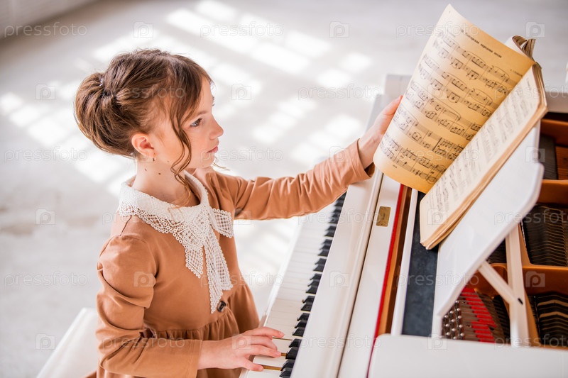 Маленькая девочка играет на пианино в помещении