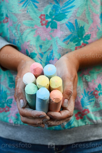 Цветные мелки в руках