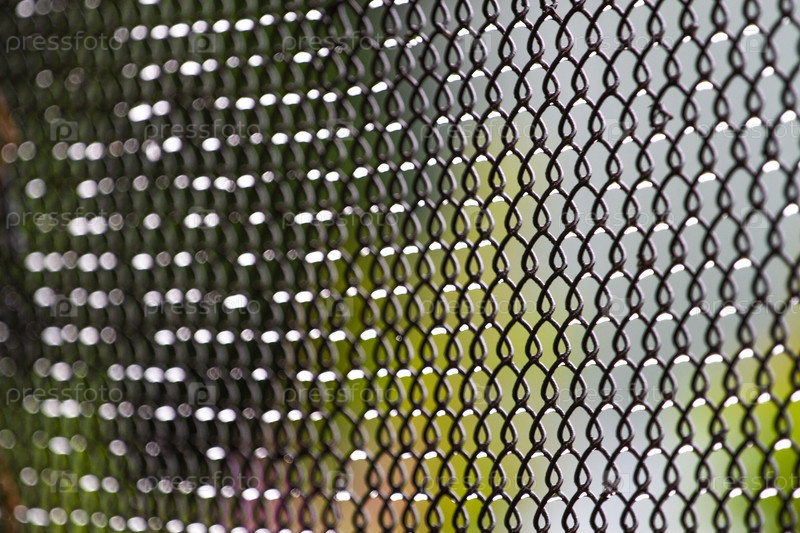 Капли дождя на железной сетке