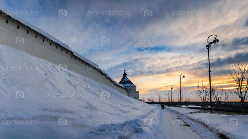 Стена Казанского Кремля с Преображской башней на закате