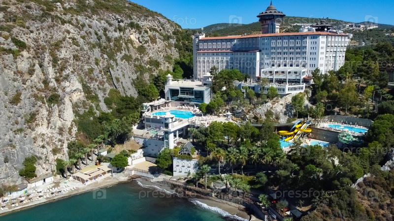 Вид на скалистую бухту изрезанных скал Памуккале