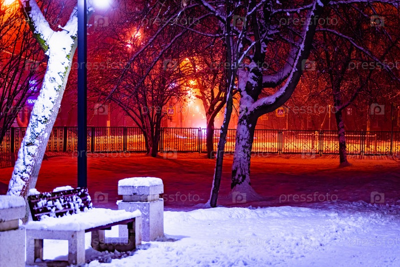 Фонарь ночь снег дерево