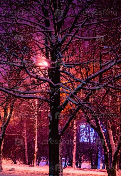 Фонарь ночь снег дерево