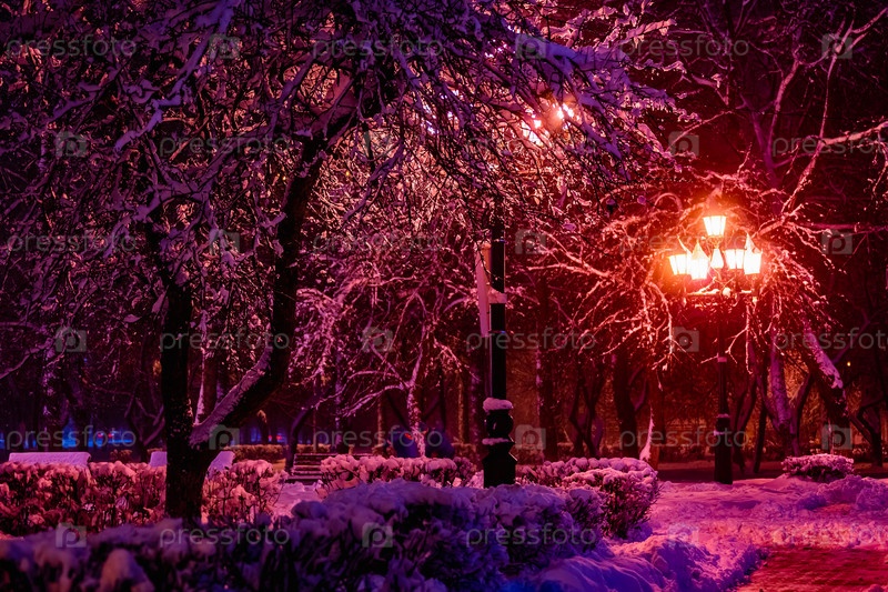 Фонарь ночь снег дерево