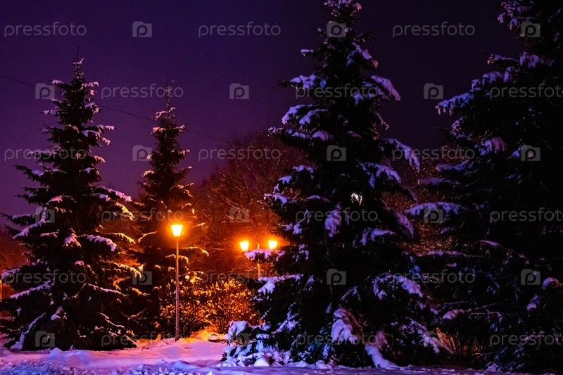 Фонарь ночь снег дерево