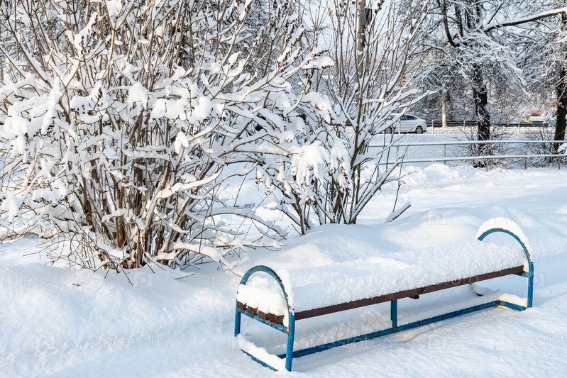 Зимний променад для прогулок со скамейкой и фонарем