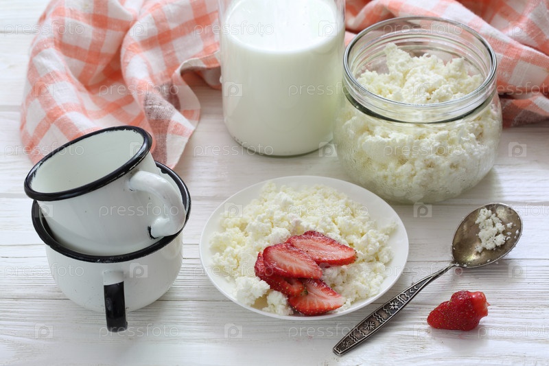Творог с клубникой на белом фоне
